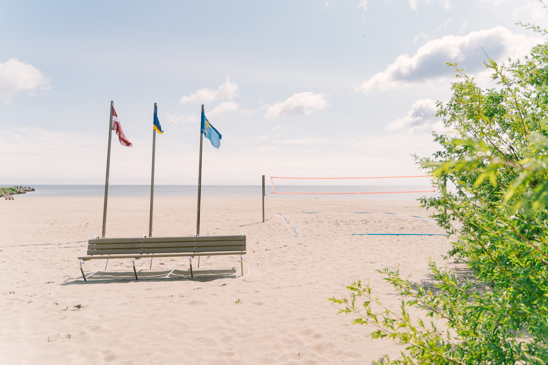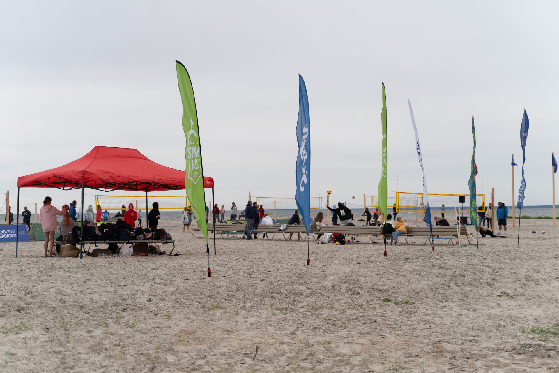 Pludmalē vēl vairāki pludmales volejbola laukumi.