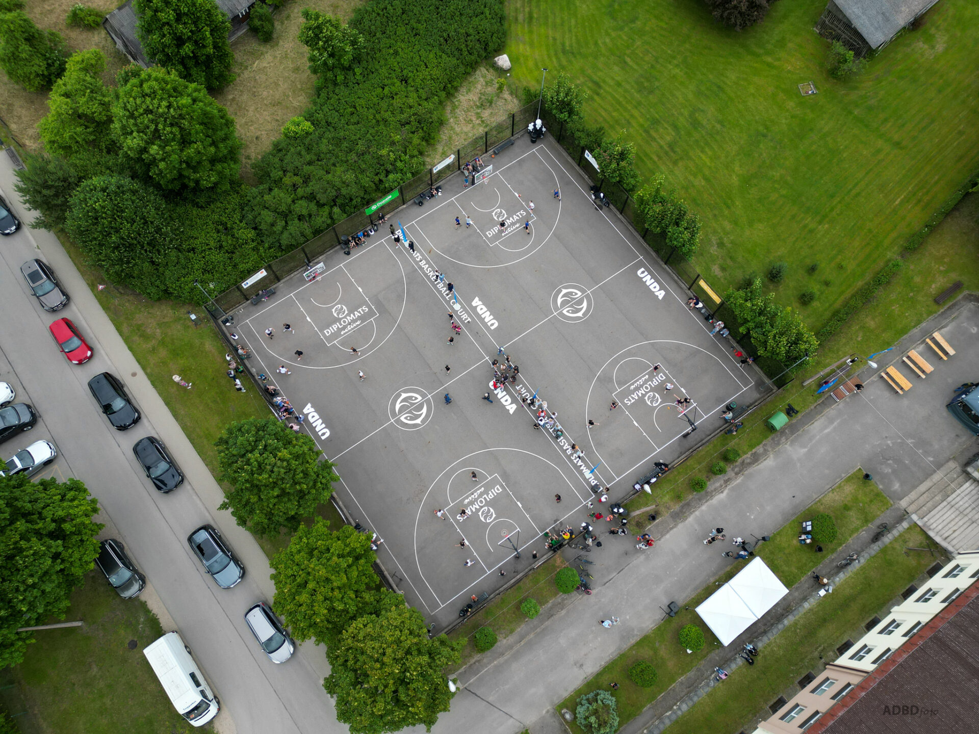 Pie dienesta viesnīcas četri 3x3 basketbola laukumi.